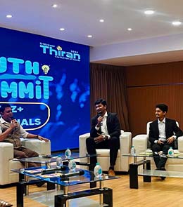 He served as a Bilingual Literary Speaker at our Lit Fest Elected as the School Pupil Leader (SPL). Basketball: Represented the school at the SGFI Junior Nationals and led our school team to the State Level, NCC: Selected as the Best Cadet and attended the Republic Day Camp (R DC) in Chennai * Serve as a Master of Ceremonies for numerous institutionalevents. * Lead the Content Creation vertical, producing insightful videos and voice-overs. Keynote Speaker for the KCT Vasagar Vattam and a co-founder of the student initiative "Vasippoma Vasagar Vattam," dedicated to spreading literature. -Guest panelist at Sri Eshwar College to discuss "Gen Z vs Millennials" moderated by James Vasanthan.